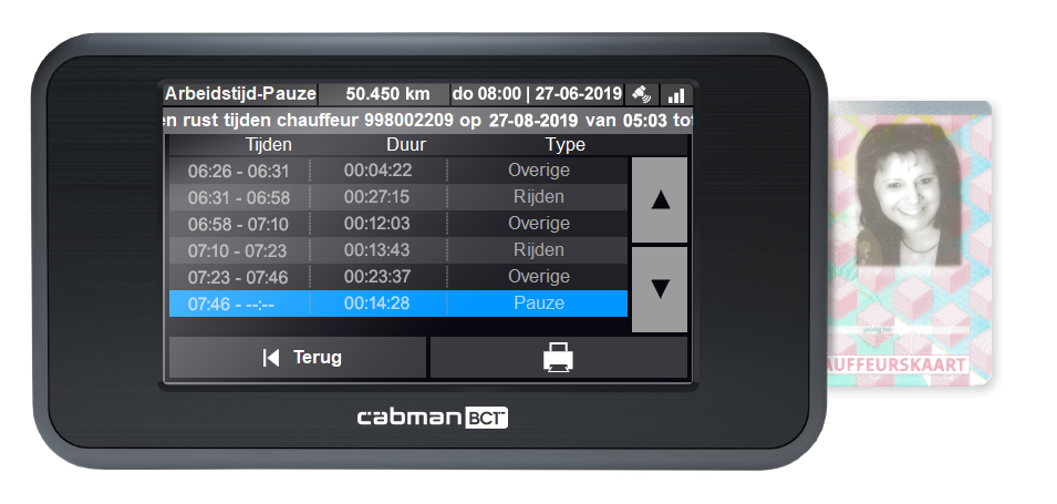 Een pauze van 14 minuten staat dus, zoals u ziet, wel geregistreerd maar telt bij een controle door de Inspectie Leefomgeving en Transport