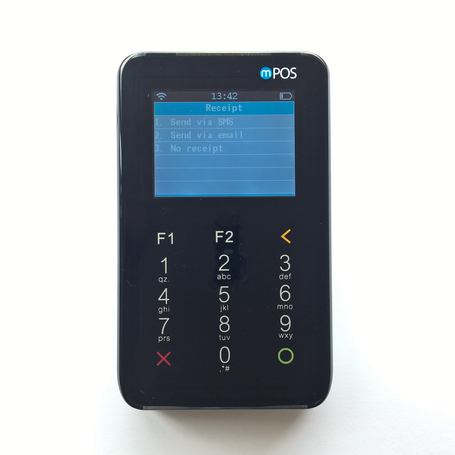 Als de transactie is goedgekeurd verschijnt een scherm met keuzes voor het versturen van een bon. Om de transactie volledig af te ronden is het belangrijk dat u altijd een keuze maakt. Maakt u geen keuze dan gaat het mis. Kiest u voor ‘Send via e-mail’ dan kan de klant zijn of haar e-mailadres ingeven. Klik in dit voorbeeld voor ‘No receipt’, dus geen bon.
